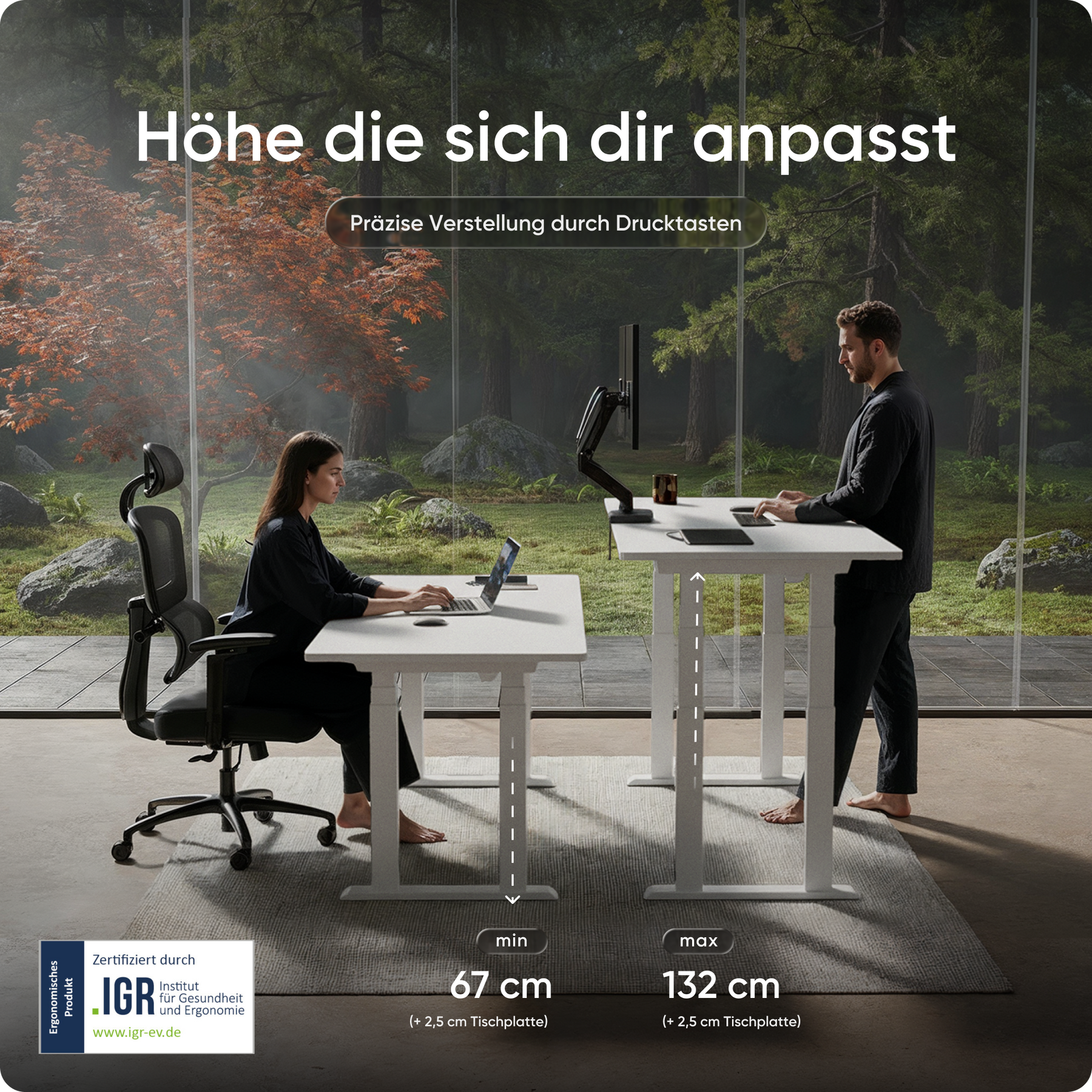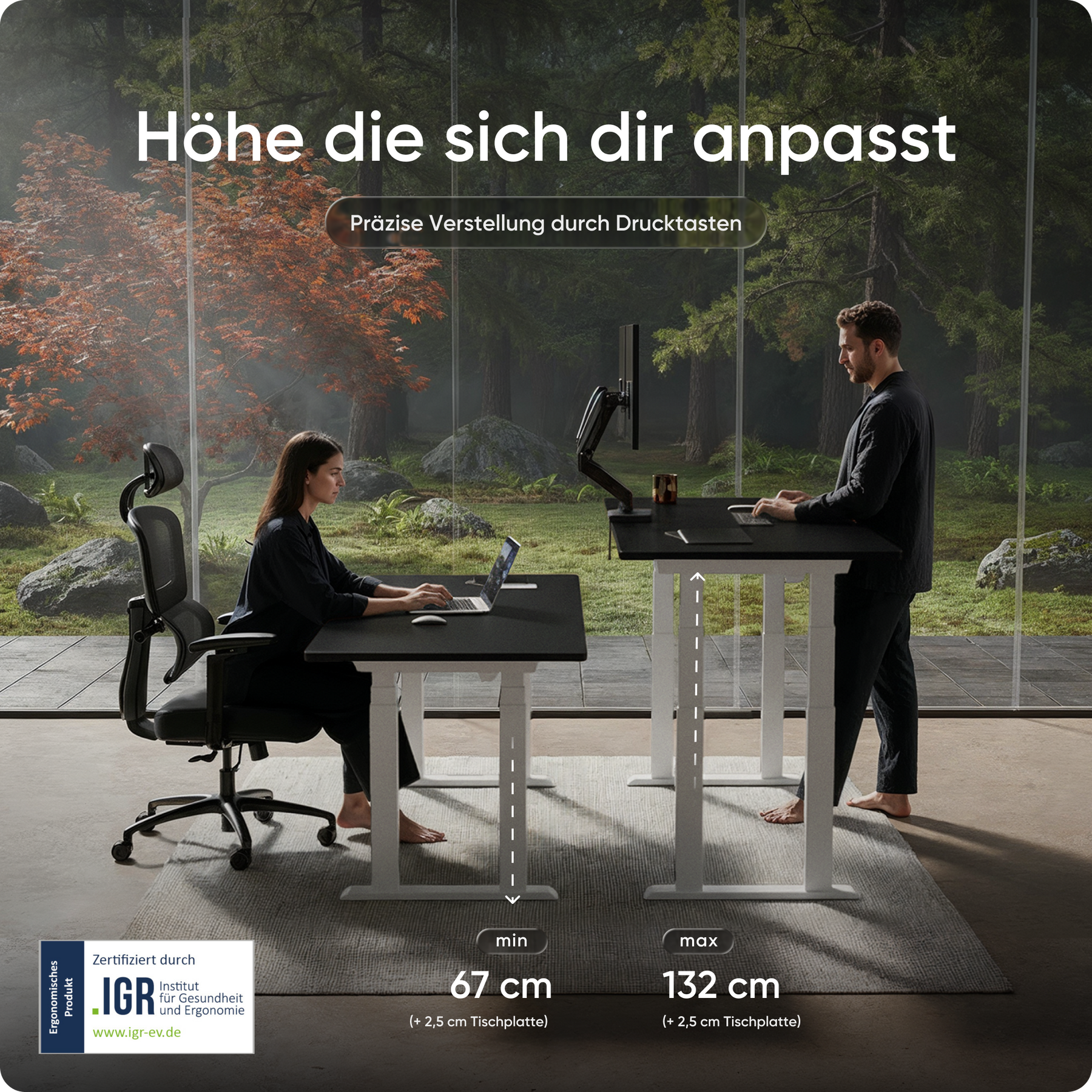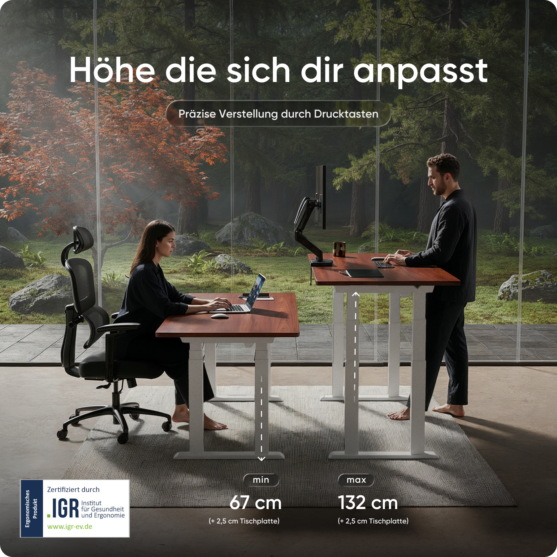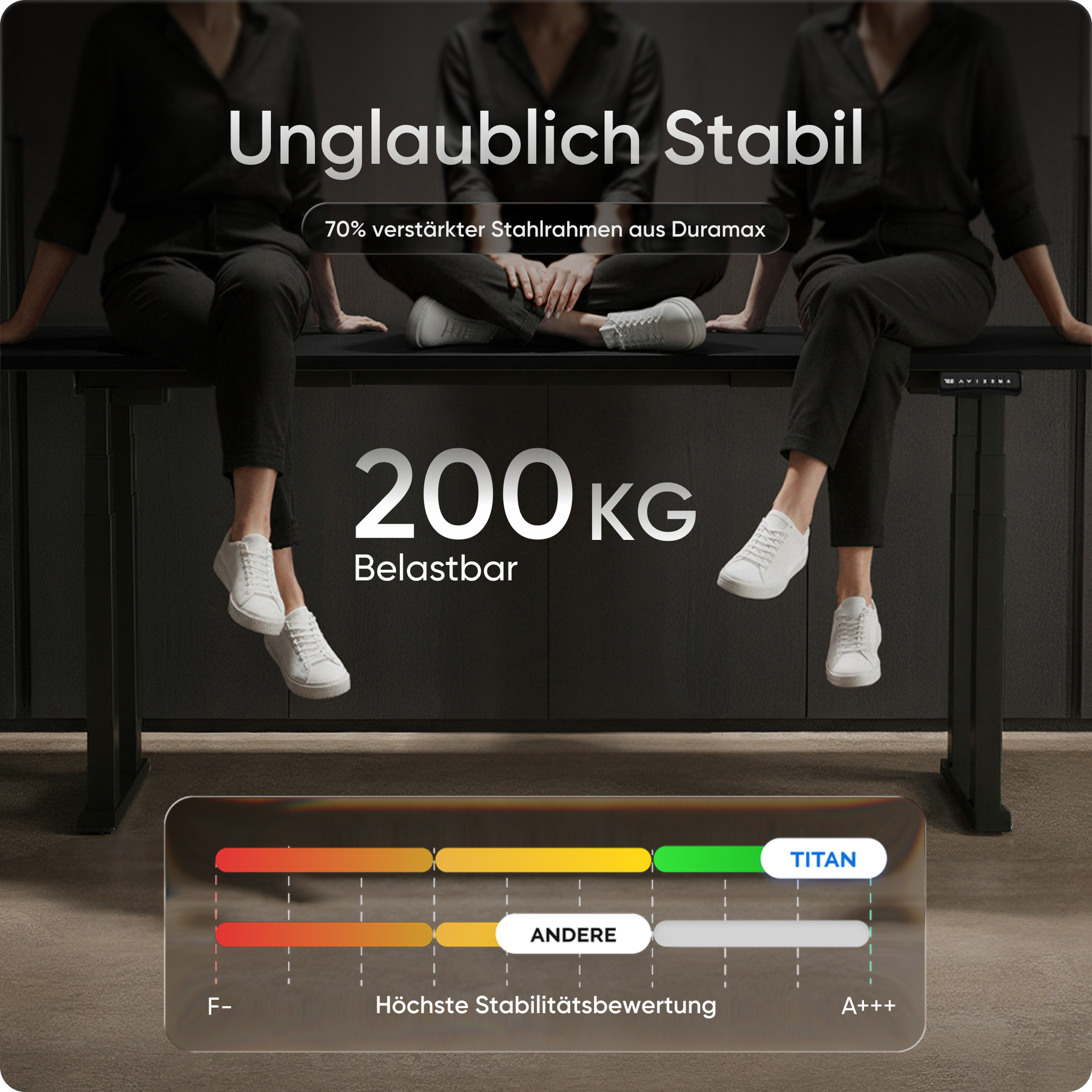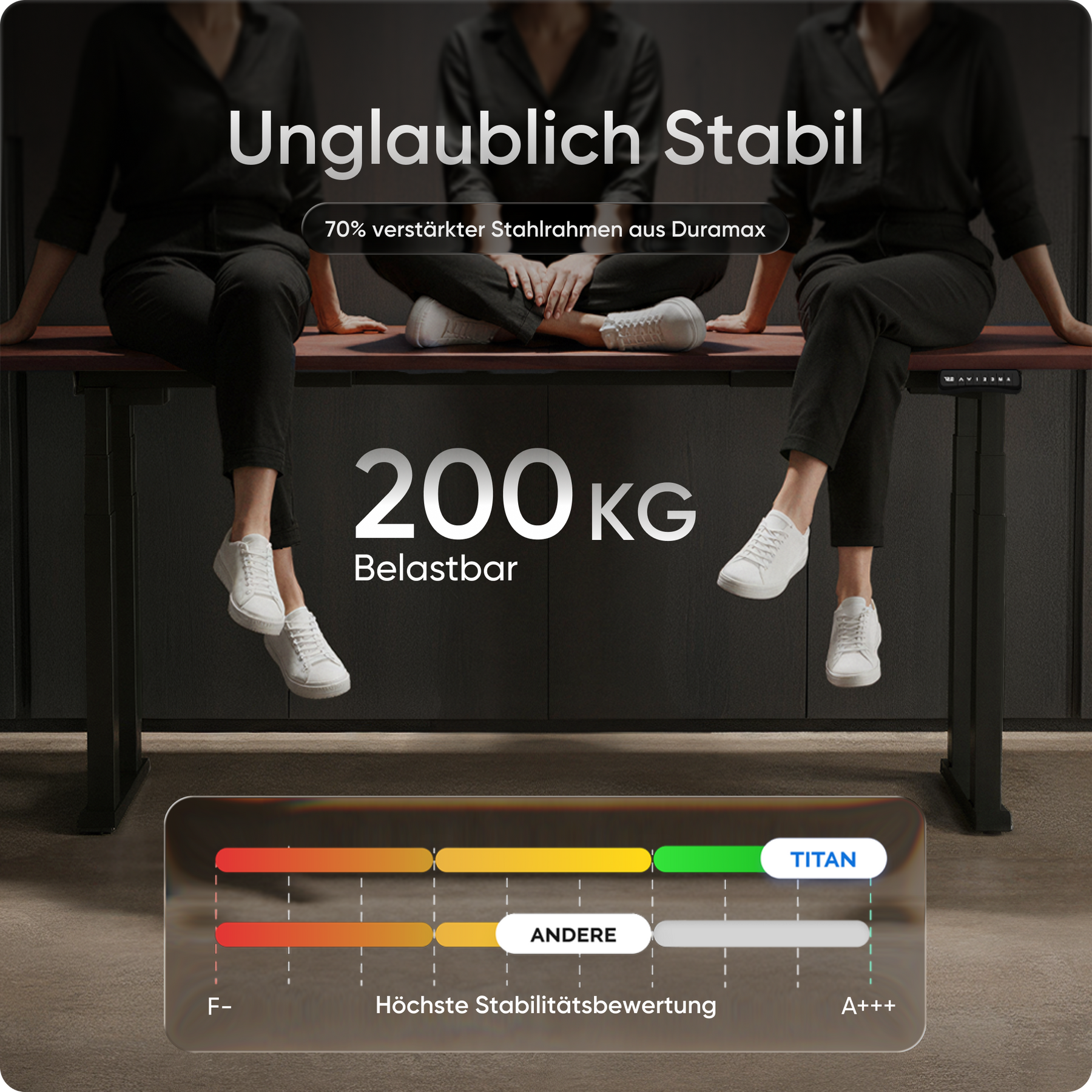Erlebe die Revolution des stabilsten 4-beinigen höhenverstellbaren Schreibtisches.