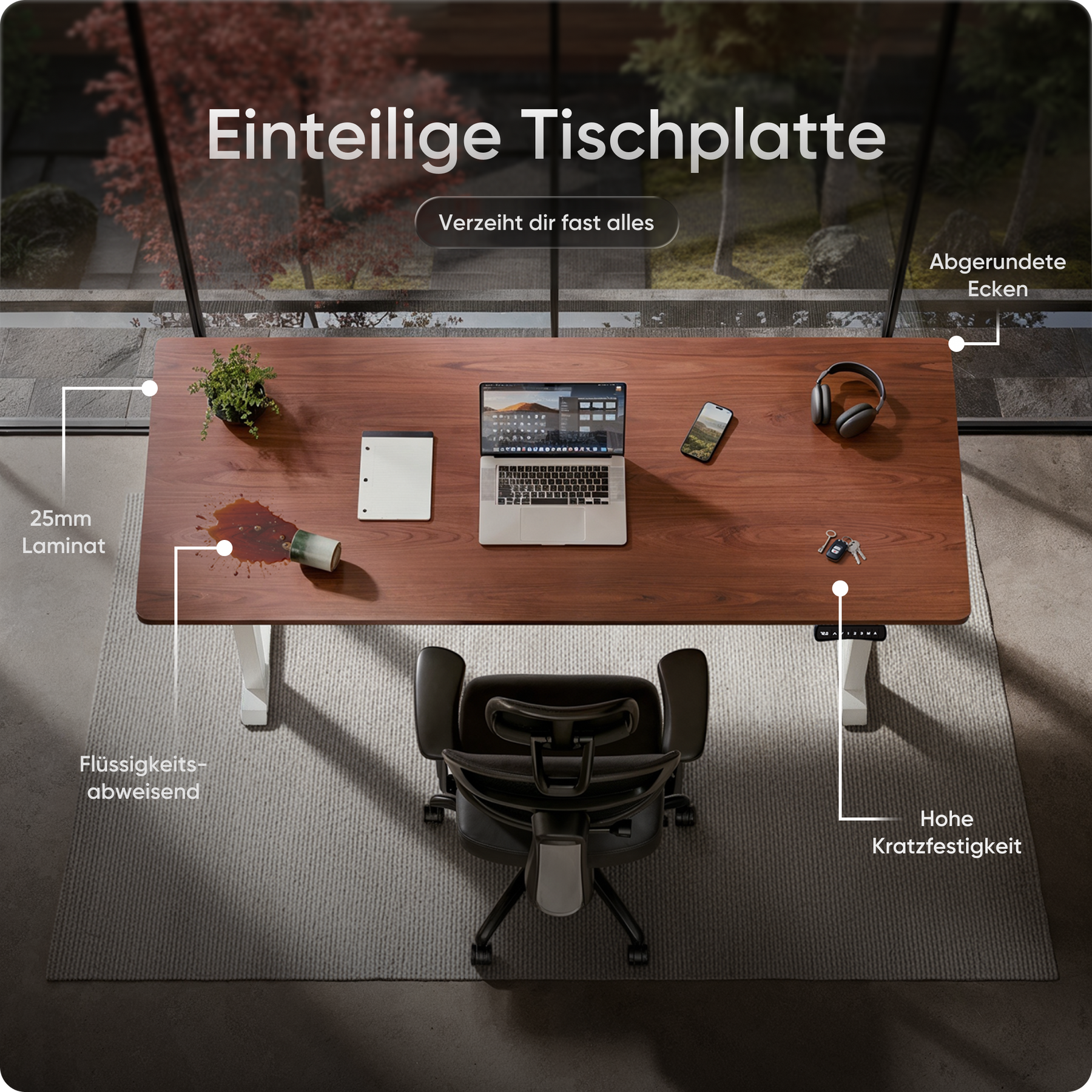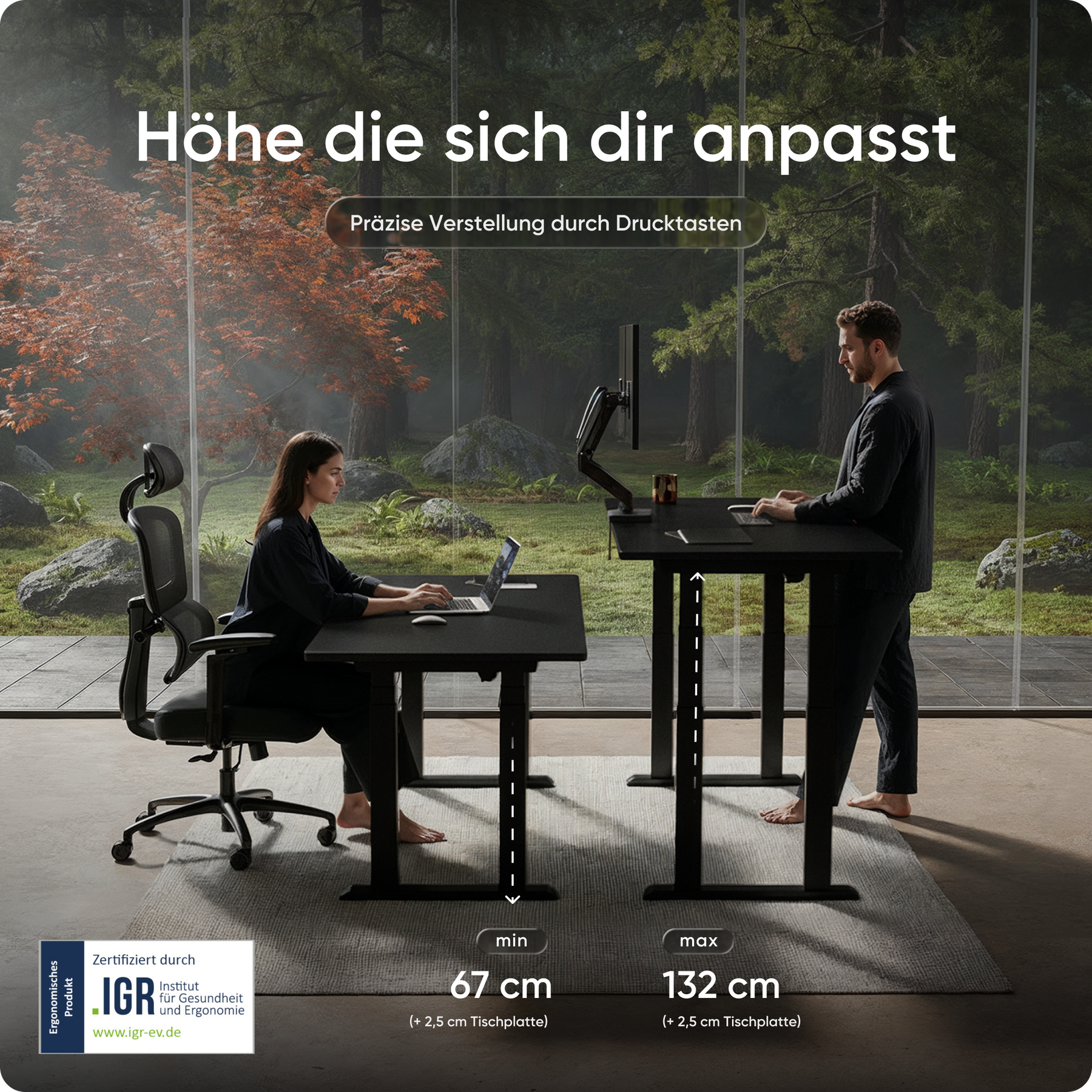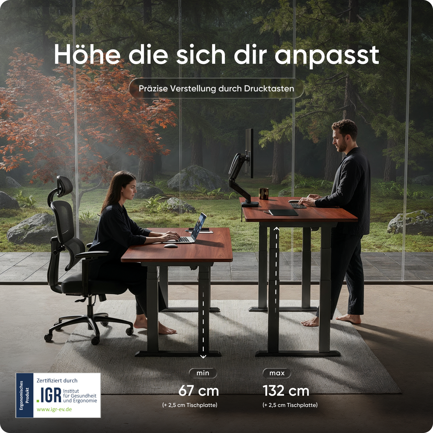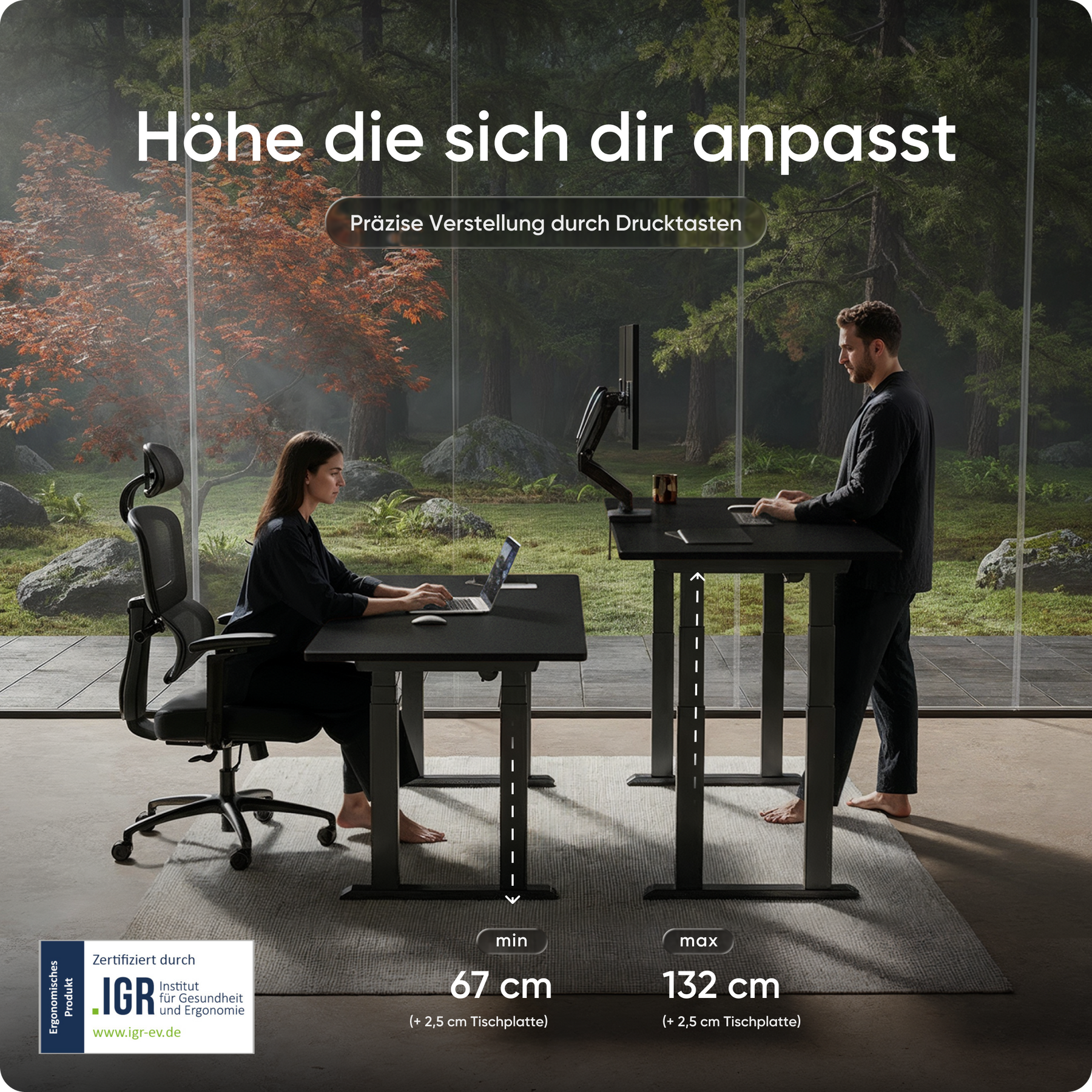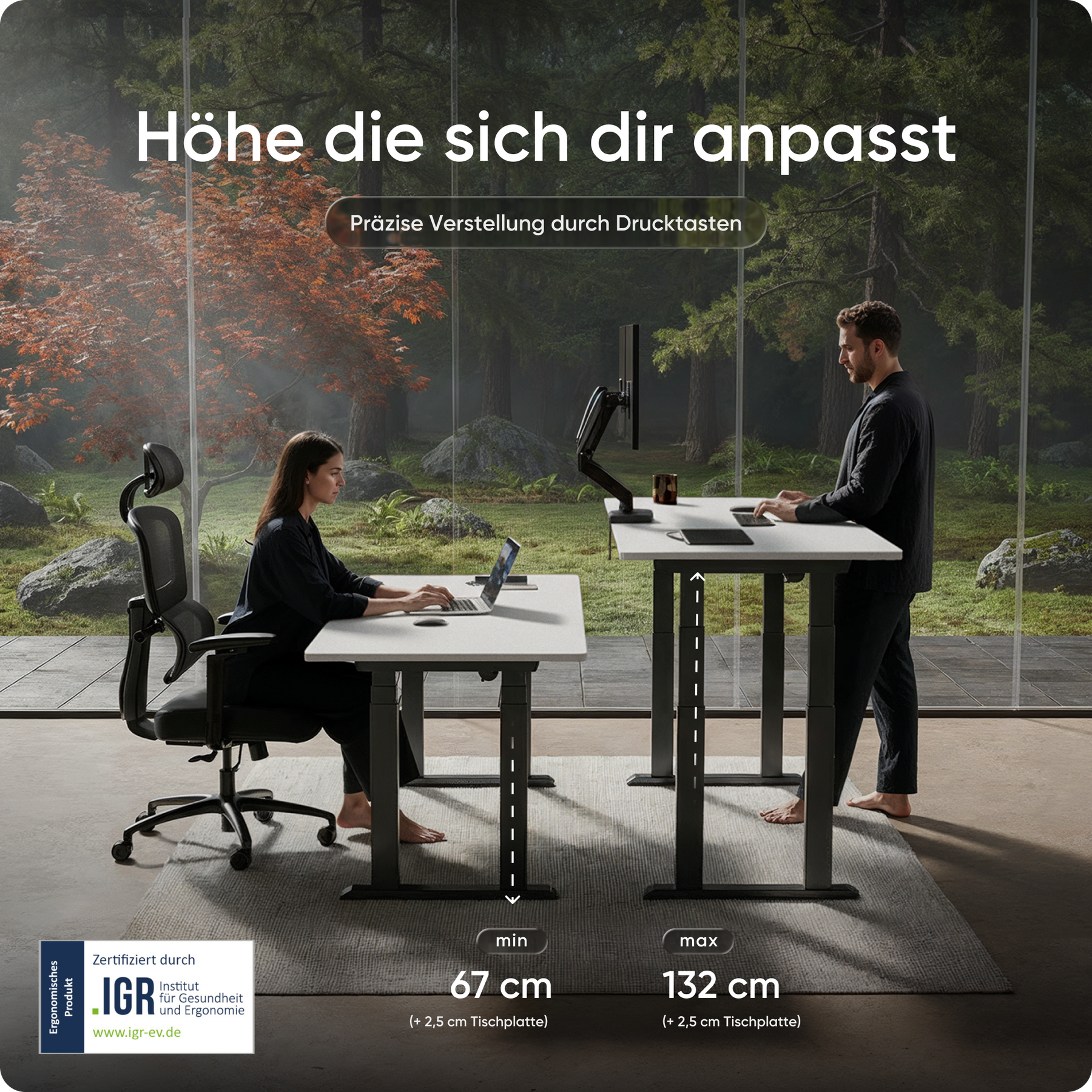 Erlebe die Revolution des stabilsten 4-beinigen höhenverstellbaren Schreibtisches.