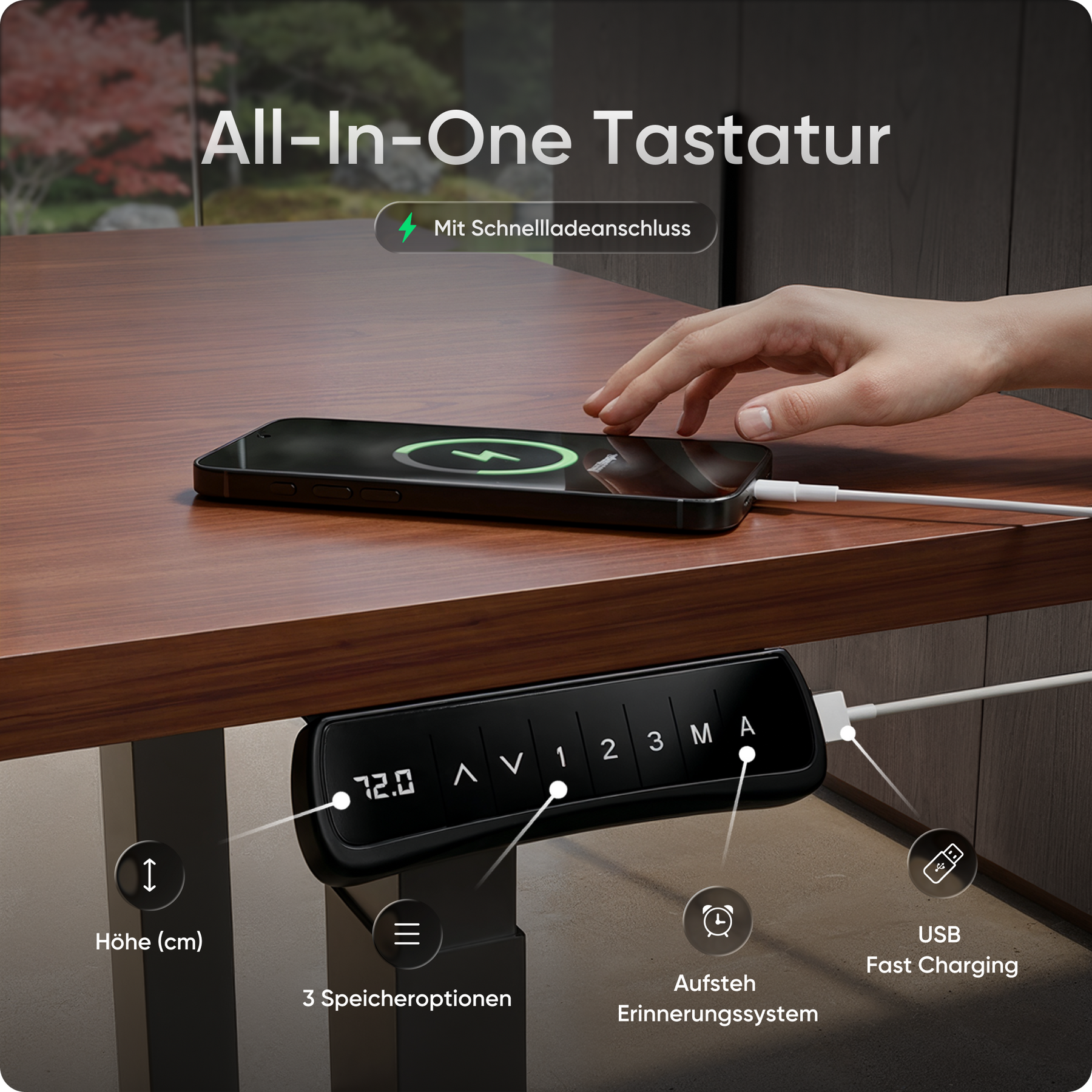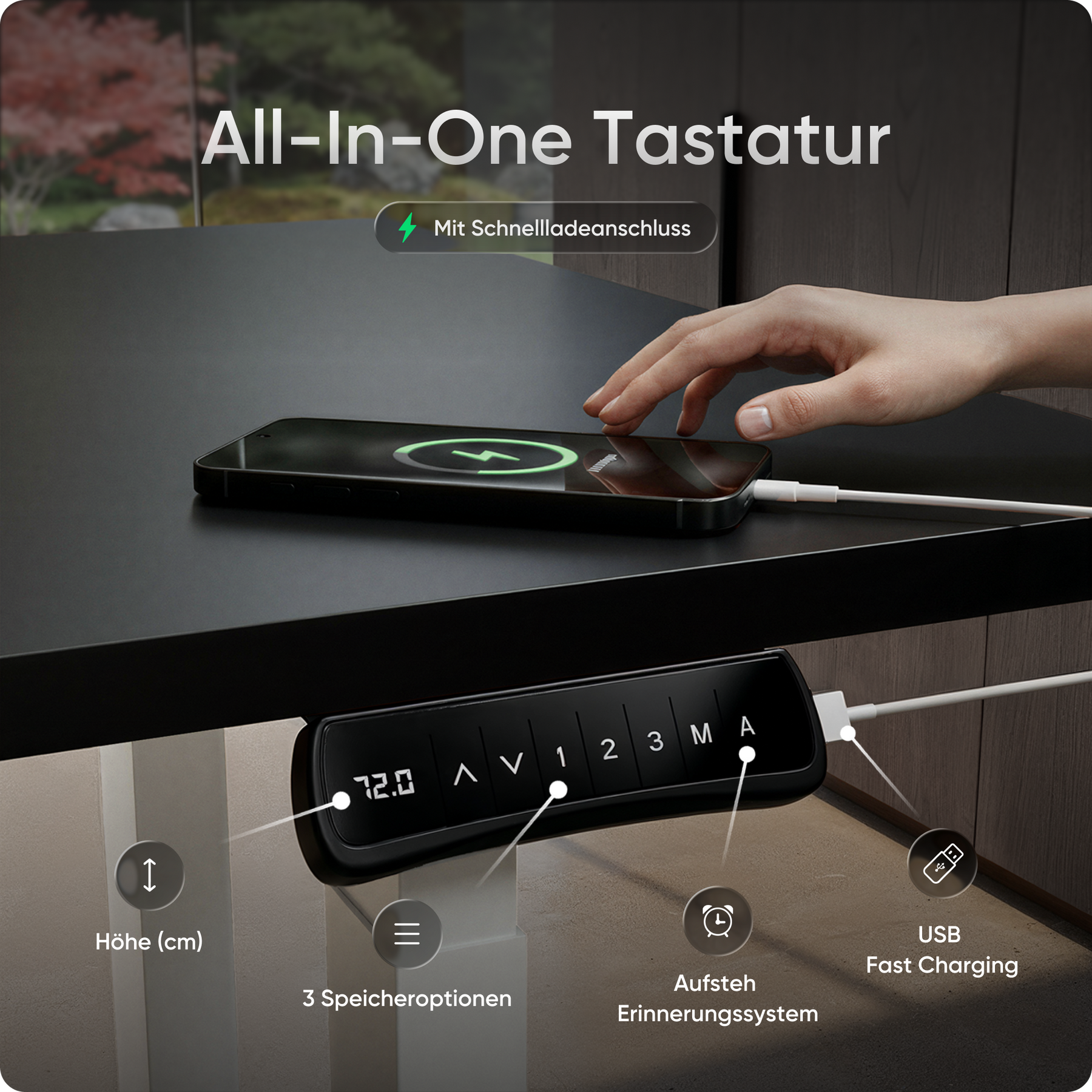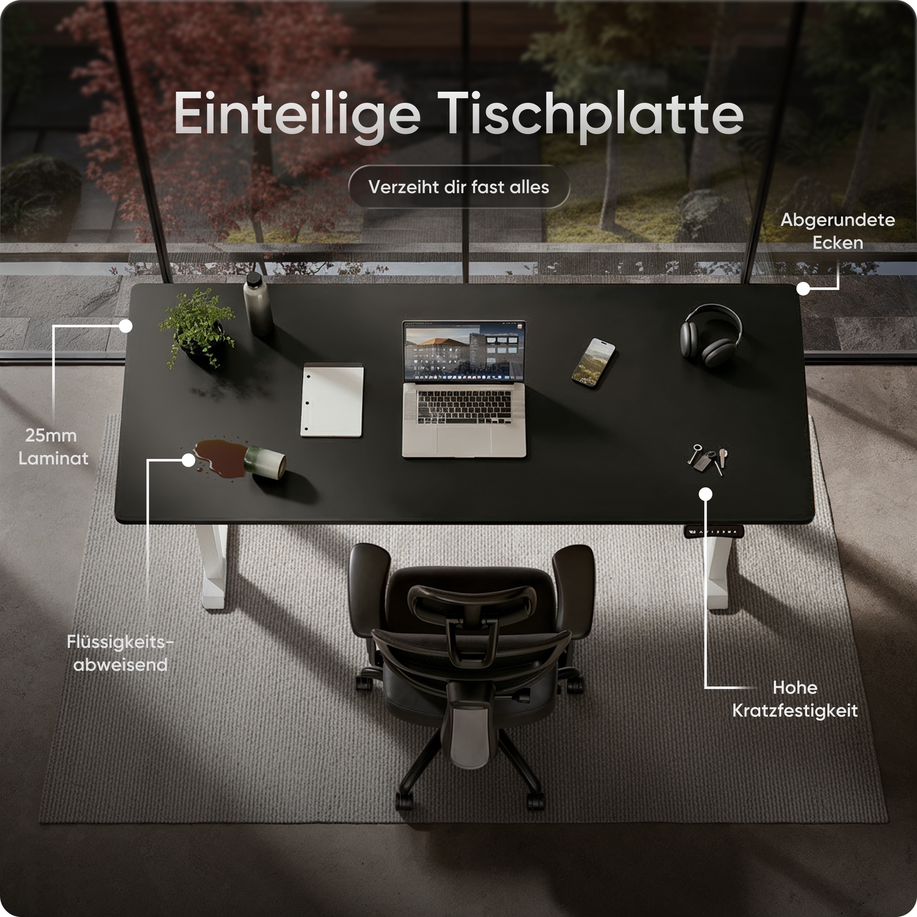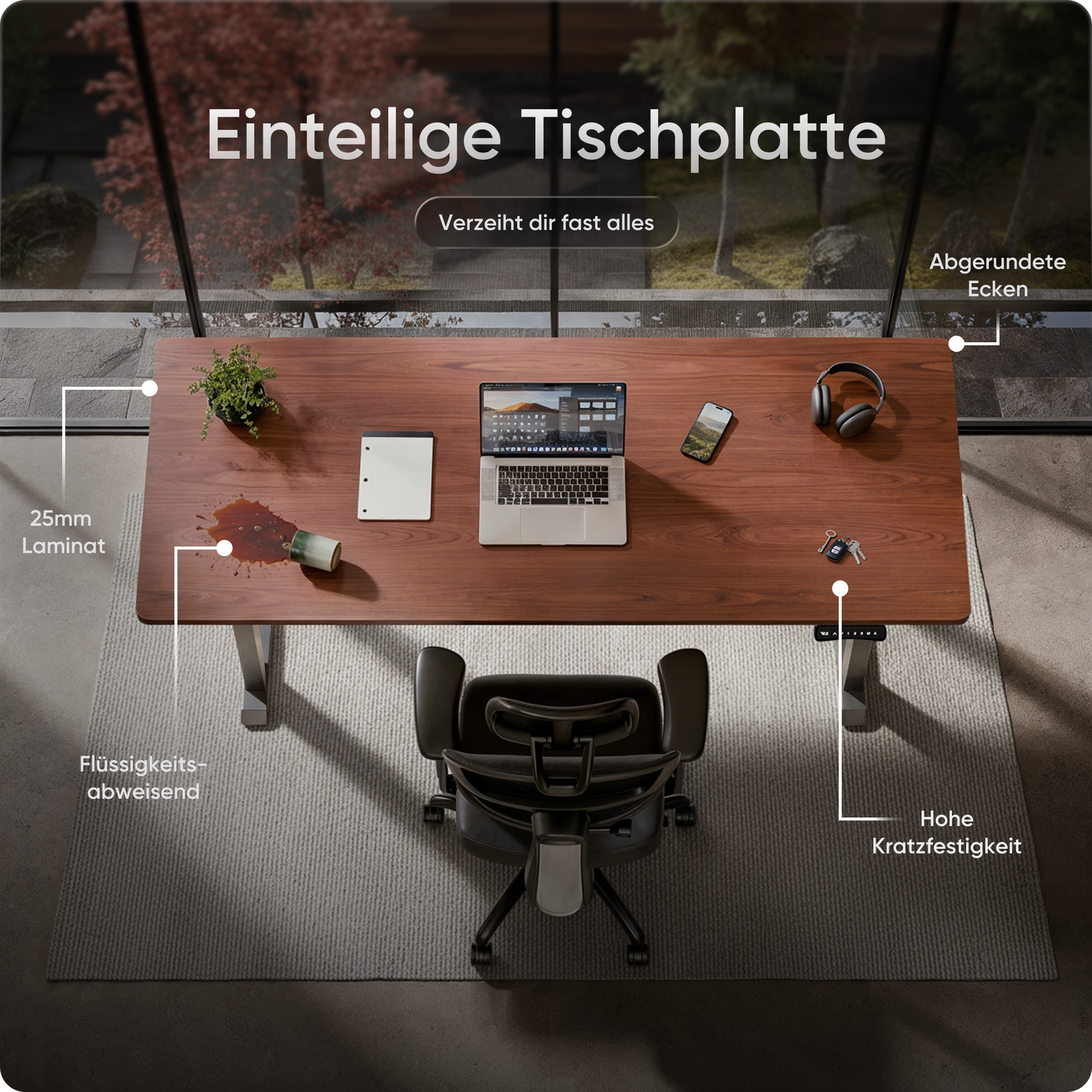 Erlebe die Revolution des stabilsten 4-beinigen höhenverstellbaren Schreibtisches.