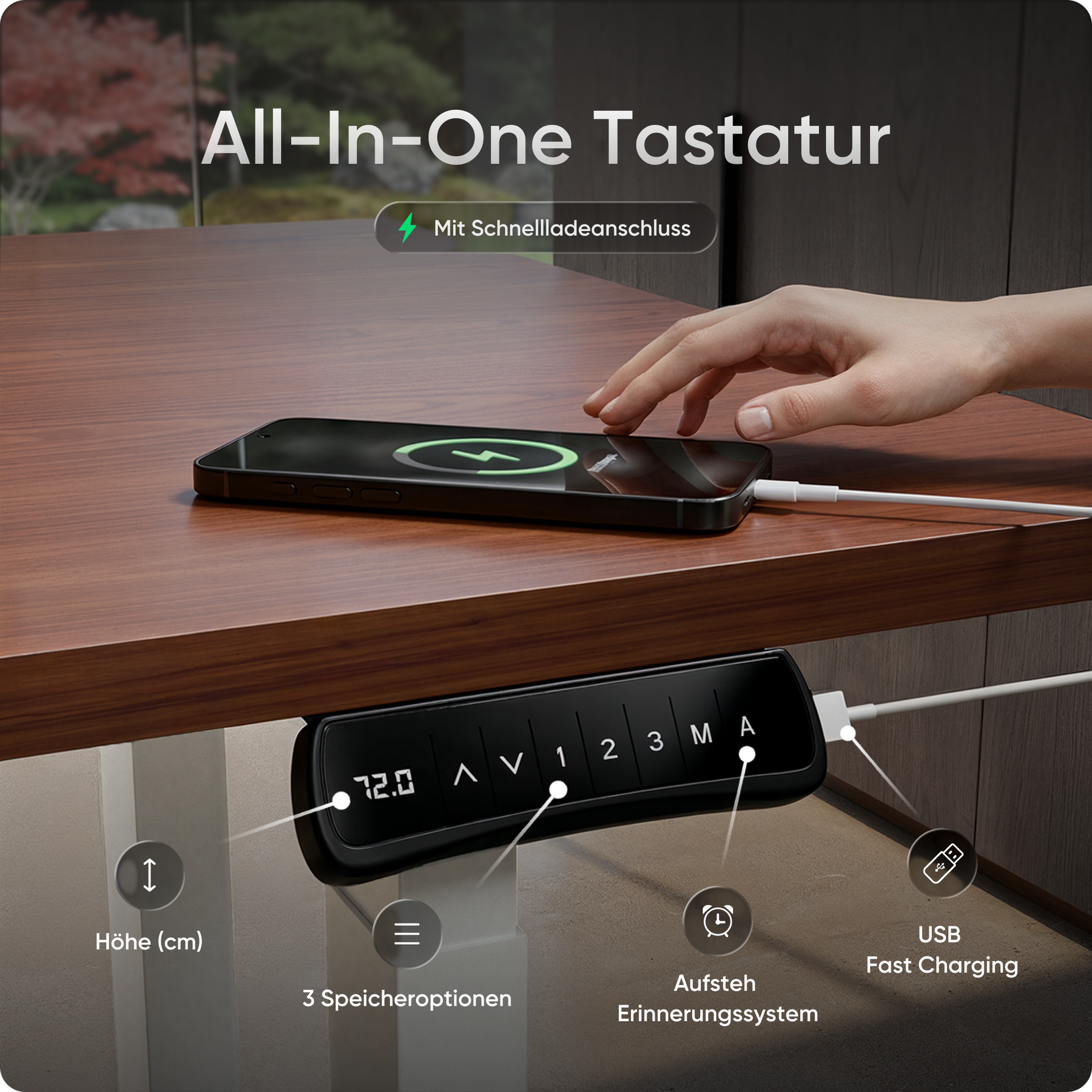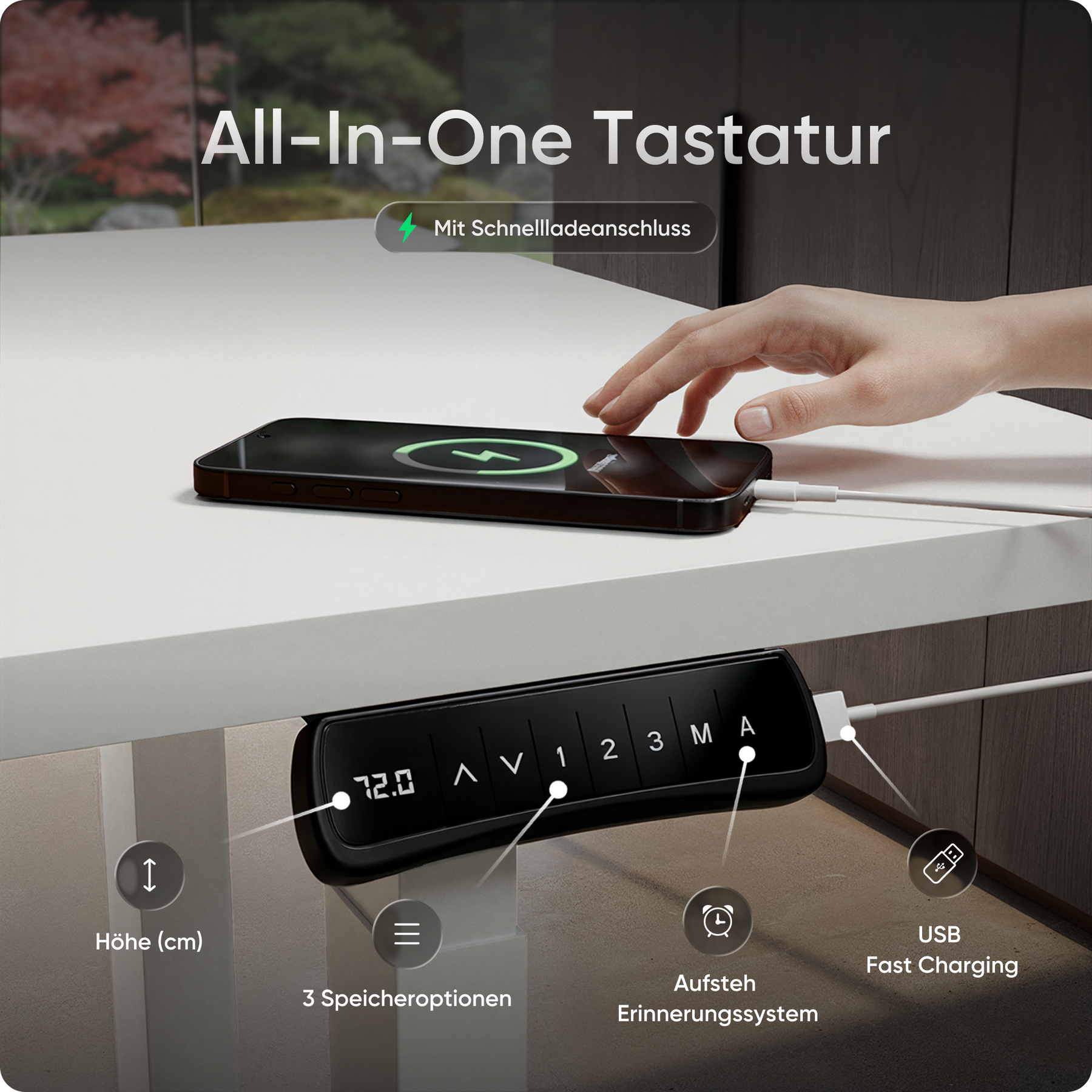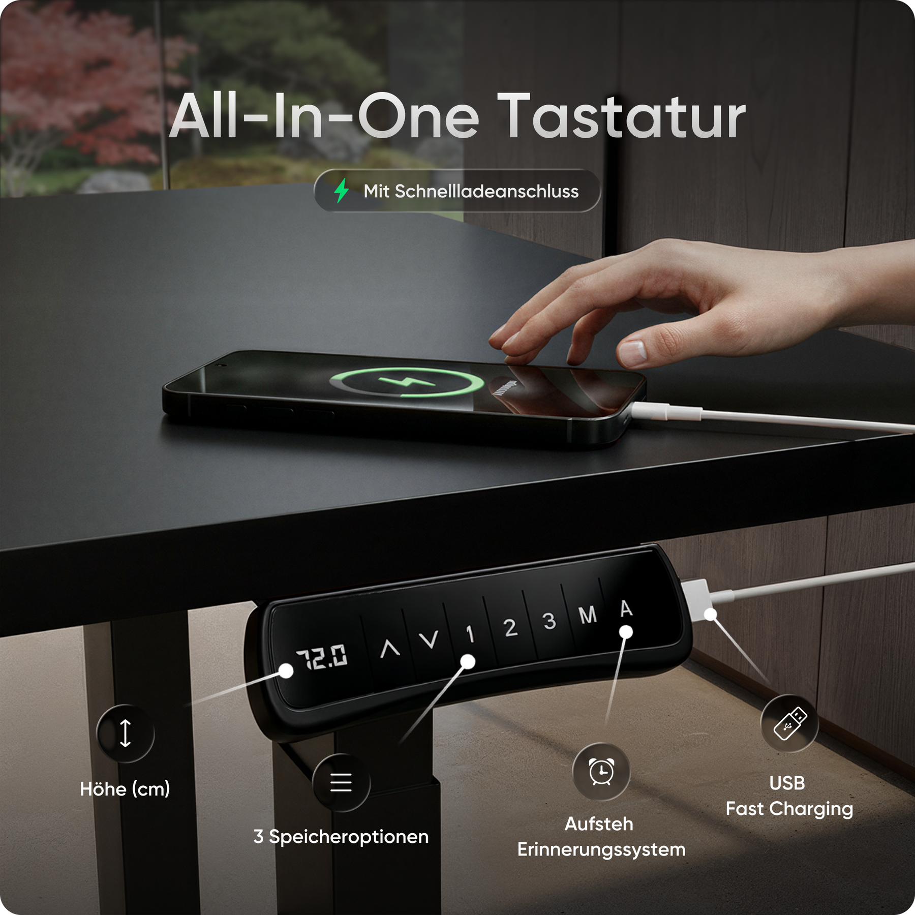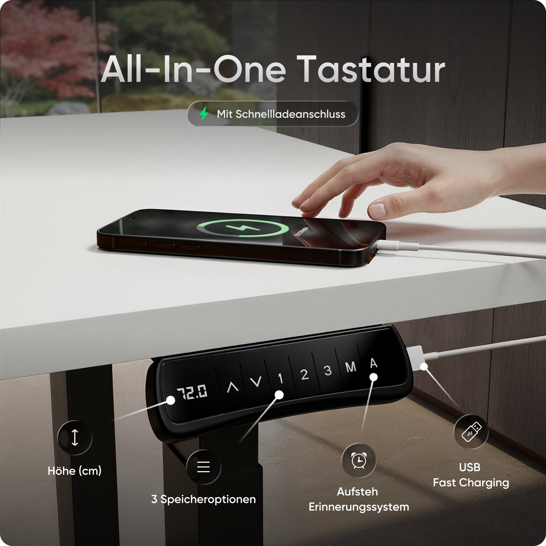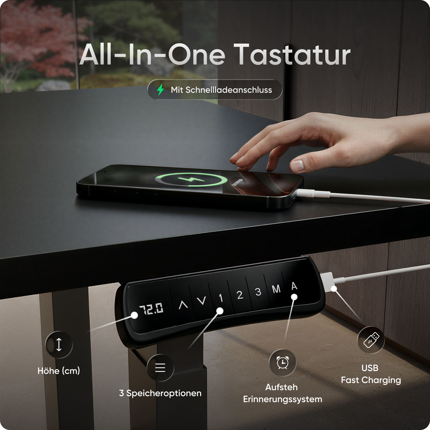 Erlebe die Revolution des stabilsten 4-beinigen höhenverstellbaren Schreibtisches.