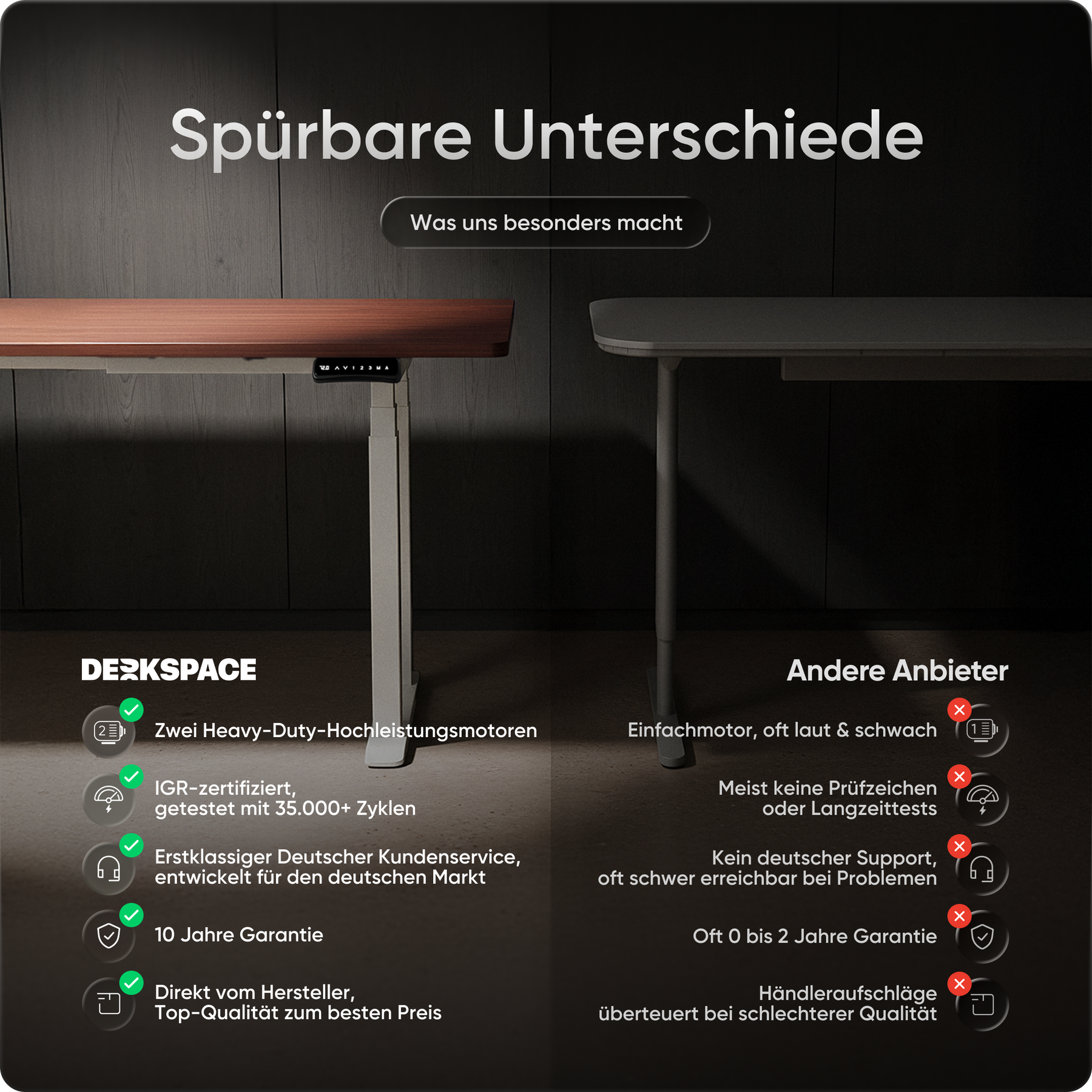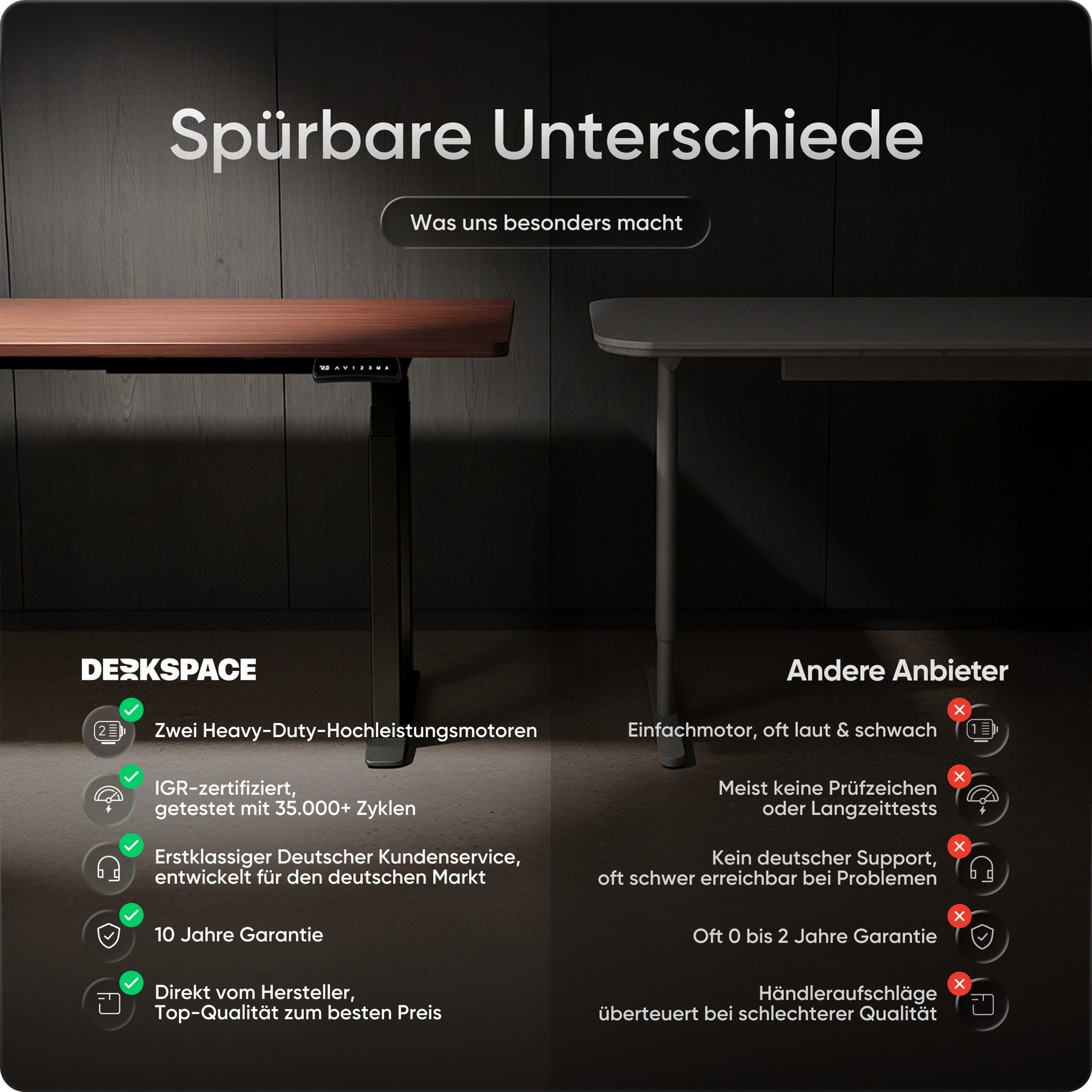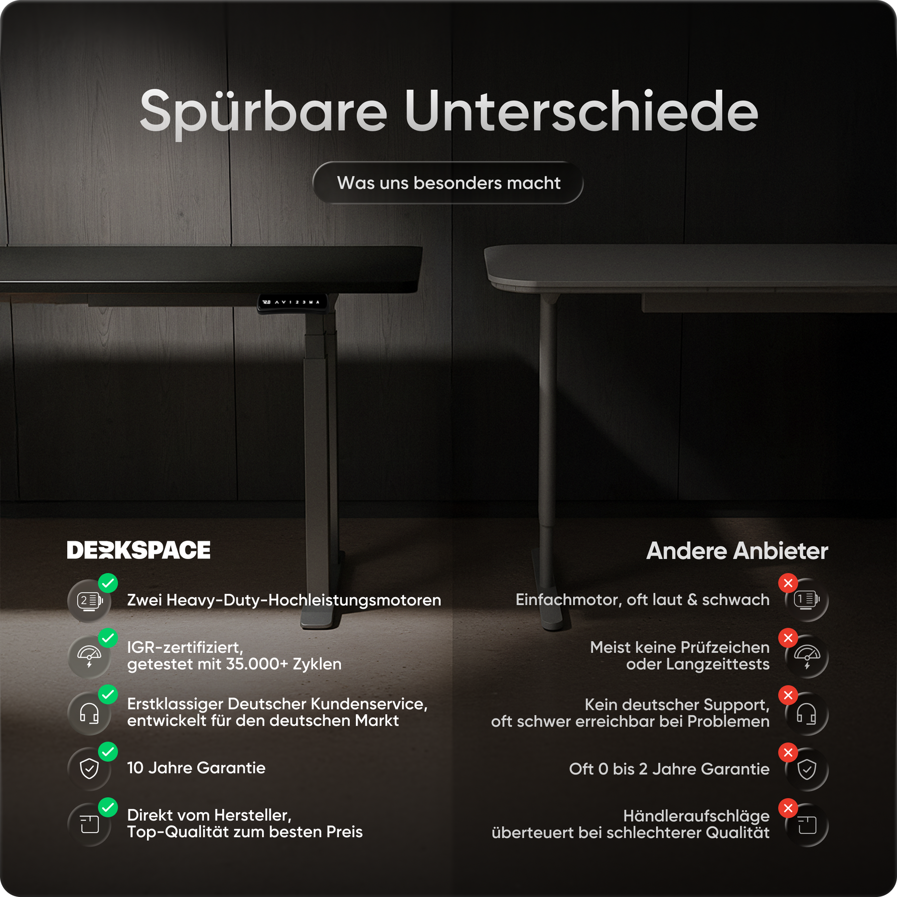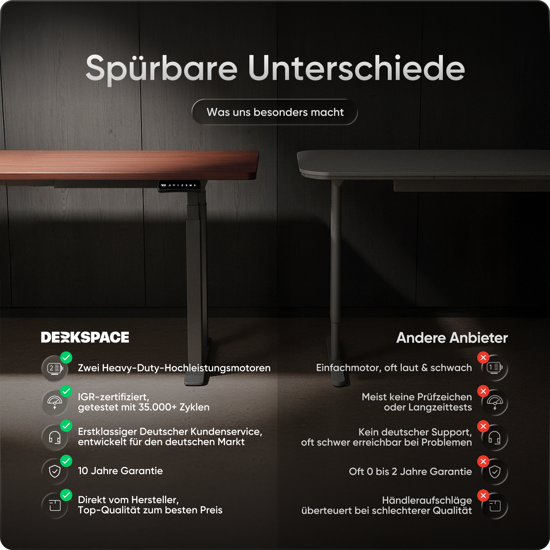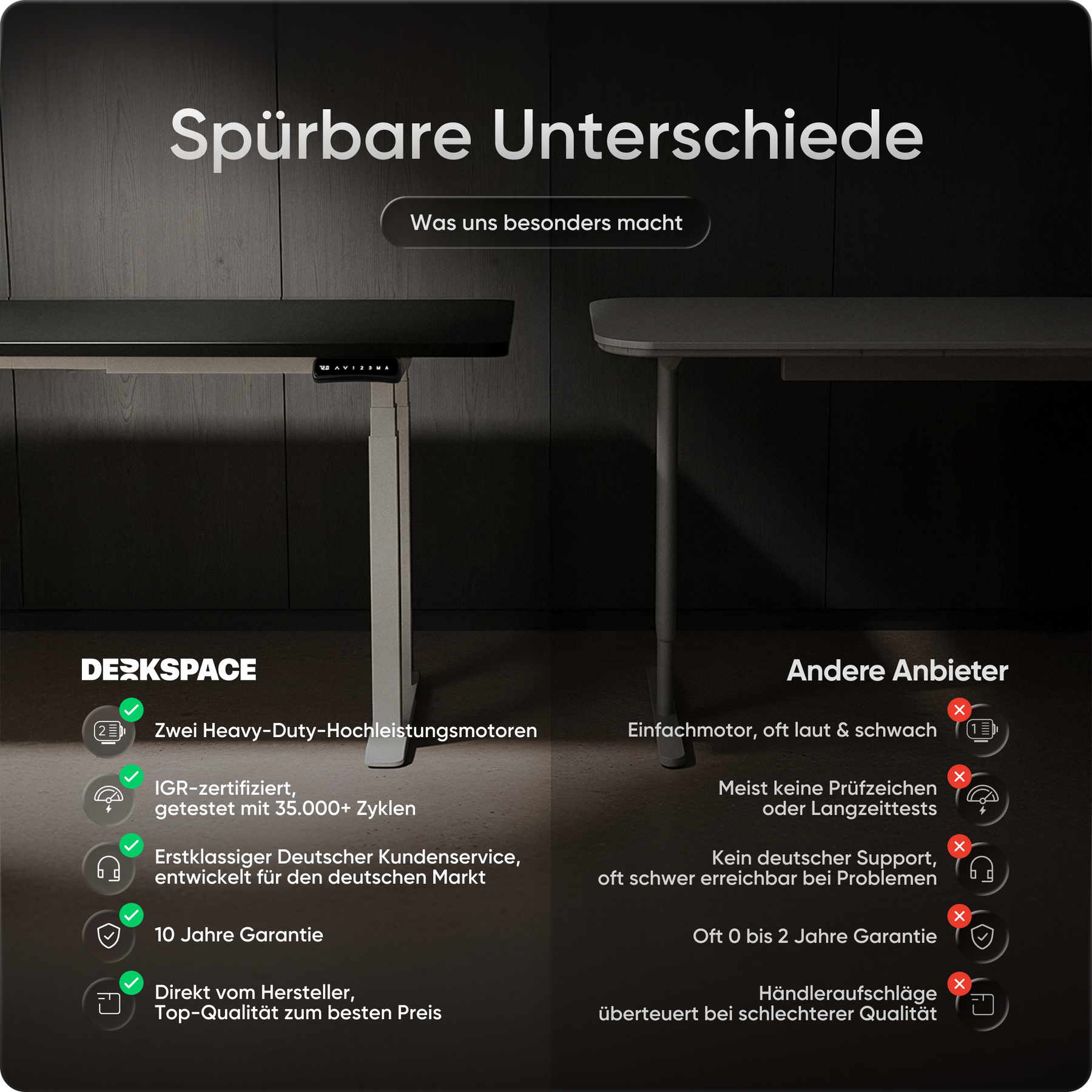 Kostenloser Versand und Rückversand für alle Produkte in Deutschland & Österreich. Andere Länder nur auf Anfrage – bitte kontaktiere uns unter support@deskspace.de.
